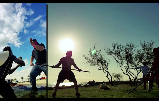 Practicing, rehearsing some moves for the Film on a slight jagged rocks and slippery foundation.